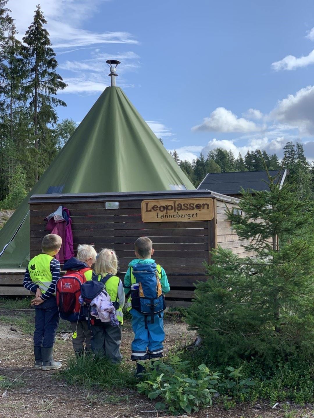 Vi er så heldige å ha barnehage i et flott naturområde, og vi har laget oss en mer fast uteplass hvor vi har satt opp en lavvo med vedovn. Denne har navnet Leoplassen!