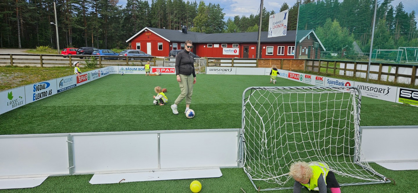 Vi har tilgang på både store og små fotballbaner. Hvor vi blant annet løper, ruller, leker med ball og bader i vannspreder om sommeren!